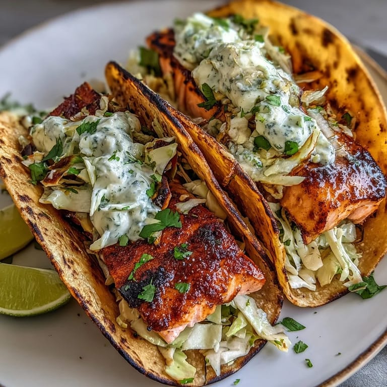 Save to Pinterest There's a moment right after you bite into one of these when the crispy salmon, cool creamy slaw, and soft tortilla all exist together in perfect proportion, and suddenly dinner doesn't feel like something you had to make but something you got to make. That's when you know this recipe belongs in your regular rotation.