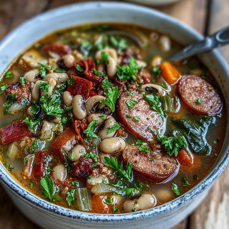 The beauty of a soup like this is that it's not precious or fussy, so you can absolutely adjust it based on what you have or what you're craving. If you're vegetarian, omit the sausage entirely and use vegetable broth instead, then add a teaspoon of smoked paprika to replace the depth the meat provides. For a thicker, heartier version, you can mash some of the black-eyed peas before serving, which creates a creamier texture without adding any cream.