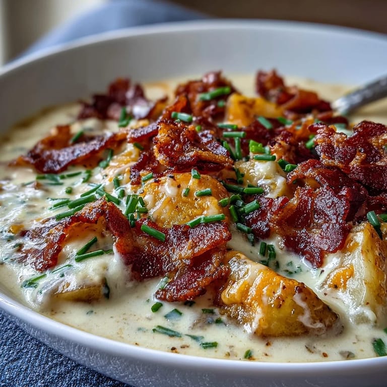 Save to Pinterest My neighbor knocked on my door one October evening with a bowl of this soup, still steaming, and I'll never forget how the smell hit me the moment I opened it—bacon, melted cheese, and something deeply comforting that made me instantly hungry. She said it was her go-to recipe when the weather turned cold, and after one spoonful, I understood why it had become a neighborhood legend. The soup is velvety but still studded with tender potato chunks, and there's something about the balance of crispy bacon against creamy cheddar that just works. I've made it countless times since, and it never fails to turn an ordinary Tuesday into something that feels a little more special.