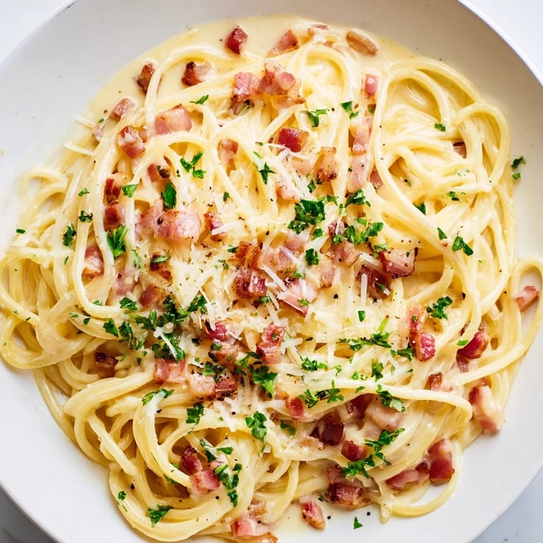 Save to Pinterest There's something magical about the moment when bacon fat meets garlic in a hot skillet—that smell alone can pull anyone into the kitchen. I discovered this pasta on an ordinary weeknight when I was craving something indulgent but didn't want to spend hours cooking. What started as a simple combination of pantry staples turned into the kind of dish that makes people linger at the dinner table, twirling their forks long after their plates are empty.