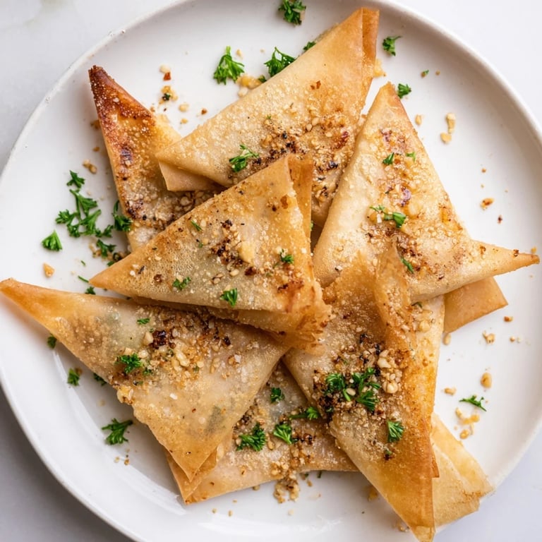 Save to Pinterest There's something almost magical about watching a lumpia wrapper transform under heat—one minute it's soft and pliable in your hands, the next it's shattering into crispy, golden shards that practically dissolve on your tongue. I discovered these garlic chips by accident, really, while meal-prepping one Sunday afternoon and realizing I had leftover wrappers sitting in my fridge. Instead of tossing them, I sliced them thin, tossed them with garlicky oil, and threw them into my air fryer out of pure curiosity. Five minutes later, my kitchen smelled like someone was roasting garlic in a five-star restaurant, and I was absolutely hooked.