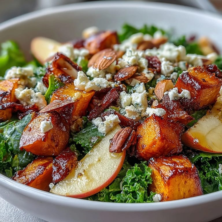 Save to Pinterest Last October, I was standing at the farmers market with a canvas bag and absolutely no plan, when a vendor's display of jewel-toned sweet potatoes caught my eye. Something about their burnt-orange glow made me stop in my tracks. By the time I got home, I'd assembled this bowl almost by accident—roasted chicken, crispy kale, tart apples, creamy goat cheese—and it became the thing I made every single week until November turned to December. It turns out autumn tastes exactly like this.