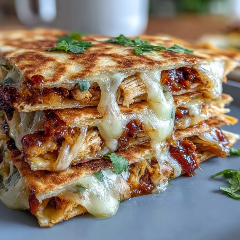 Save to Pinterest There's something irresistible about the combination of sweet, spicy, and savory flavors that come together in these Hot Honey BBQ Chicken Quesadillas. Each bite delivers the perfect balance of tender shredded chicken coated in a sticky-sweet hot honey BBQ sauce, melty cheese that pulls into delicious strings, and the fresh crunch of sautéed peppers and onions. The contrast of crispy, golden-brown tortilla exterior with the gooey, flavor-packed filling makes this dish a guaranteed crowd-pleaser.