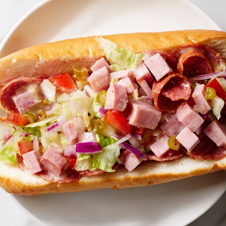 Save to Pinterest My cousin Tony brought this sandwich to a summer cookout, except he forgot the rolls at home and served it in bowls with forks. Everyone stood around the picnic table, laughing and scooping up the chopped salami mixture like it was some kind of deconstructed deli salad. By the time he ran back for the bread, half of us had already finished eating. That accident taught me something: the magic is in the chop, the toss, the way everything gets coated in that tangy dressing so every bite tastes complete.