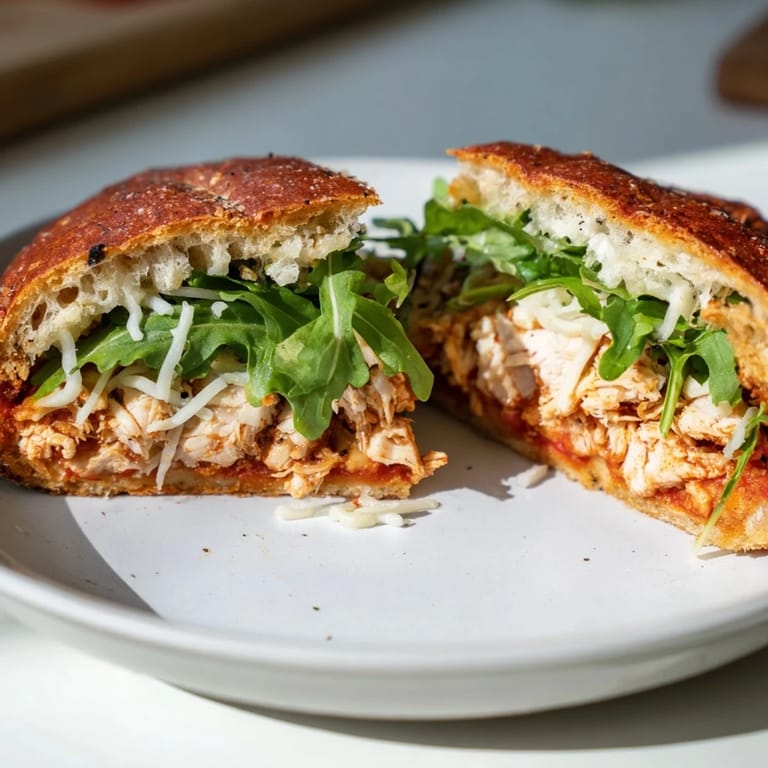Arugula is my go-to, but baby spinach works if you want something milder, and fresh basil is incredible if your leftover pizza was margherita or anything tomato-heavy. For a vegetarian take, swap the chicken for roasted vegetables like zucchini, bell peppers, or eggplant. You can even use sautรฉed mushrooms with a little garlic, they bring a meaty texture without any actual meat. The key is to keep the filling fairly dry so the sandwich doesn't get soggy.