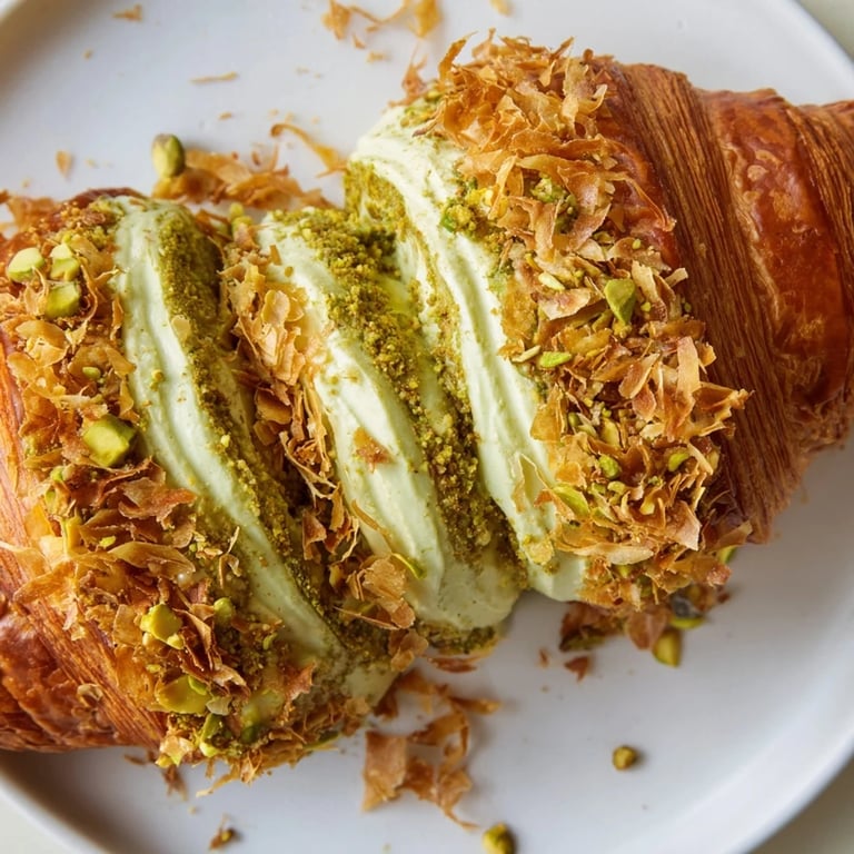 Save to Pinterest I discovered pistachio cream croissants completely by accident one Saturday morning when I had leftover croissants and a container of homemade pistachio paste that needed using up. Instead of tossing them, I started experimenting—slicing, filling, topping with crispy phyllo I'd been saving. The result was so unexpectedly elegant that I've been making them ever since, each time tweaking something small but essential.
