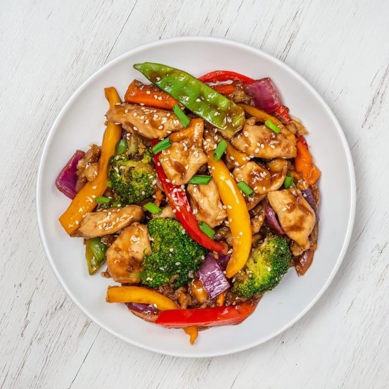 Save to Pinterest A vibrant, quick-cooking one-pan meal featuring tender chicken and crisp vegetables tossed in a savory stir-fry sauce—ready in less time than delivery.